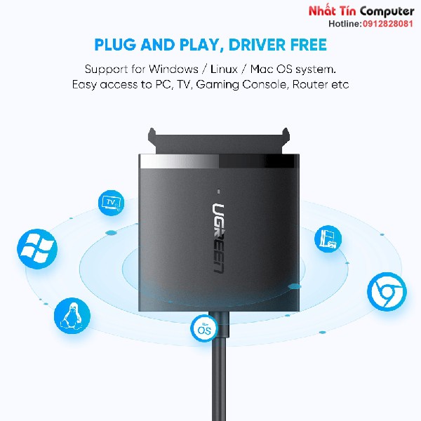 Cáp chuyển đổi USB 3.0 sang SATA cho ổ cứng SATA 2,5 /3,5 inch Ugreen 60561 cao cấpCáp chuyển đổi USB to Sata Ugreen 60561 với sự hỗ trợ của UASP, UGREEN USB 3.0 to SATA Hard Drive Converter cho phép bạn tận hưởng tốc độ nhanh hơn 20% so với các loại khác. với tốc độ lên đến 5Gbps, nó giúp bạn sao lưu các tập tin hoặc nâng cấp ổ cứng máy tính xách tay / PC của bạn một cách nhanh chóng.