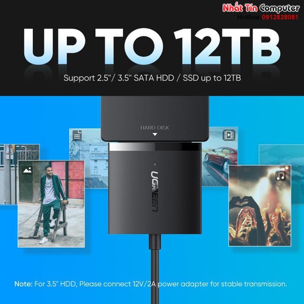 Đối với HDD 3.5 "", Vui lòng kết nối bộ đổi nguồn 12V/2A để đường truyền ổn định (hộp sp không kèm nguồn).