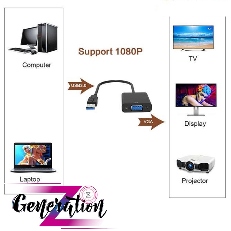 Cáp chuyển đổi tín hiệu USB 3.0 Sang VGA.Sản phẩm ứng dụng mở rộng thêm một màn hình phụ hiển thị cho PC, Laptop, Máy tính đồng bộ.