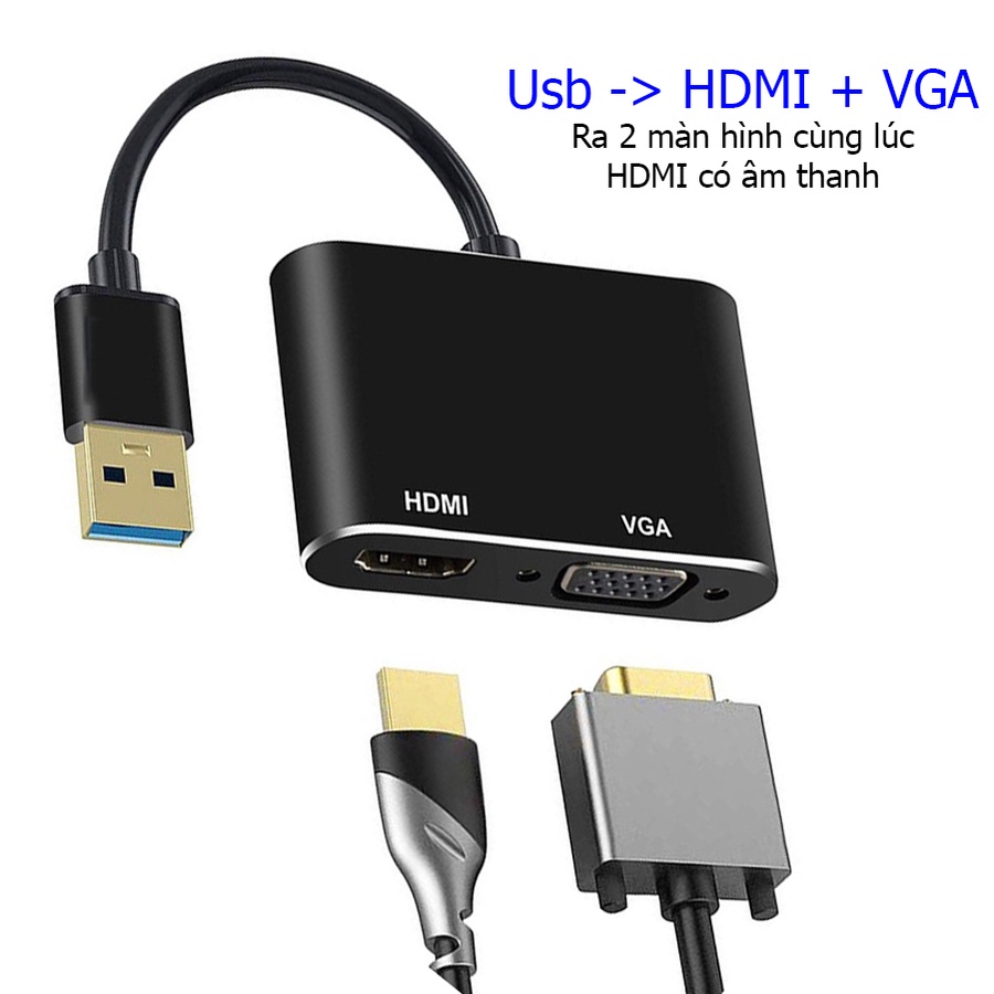 ✅790683: usb 3.0 to hdmi+vga (ra 2 màn hình cùng lúc, HDMI có âm thanh)