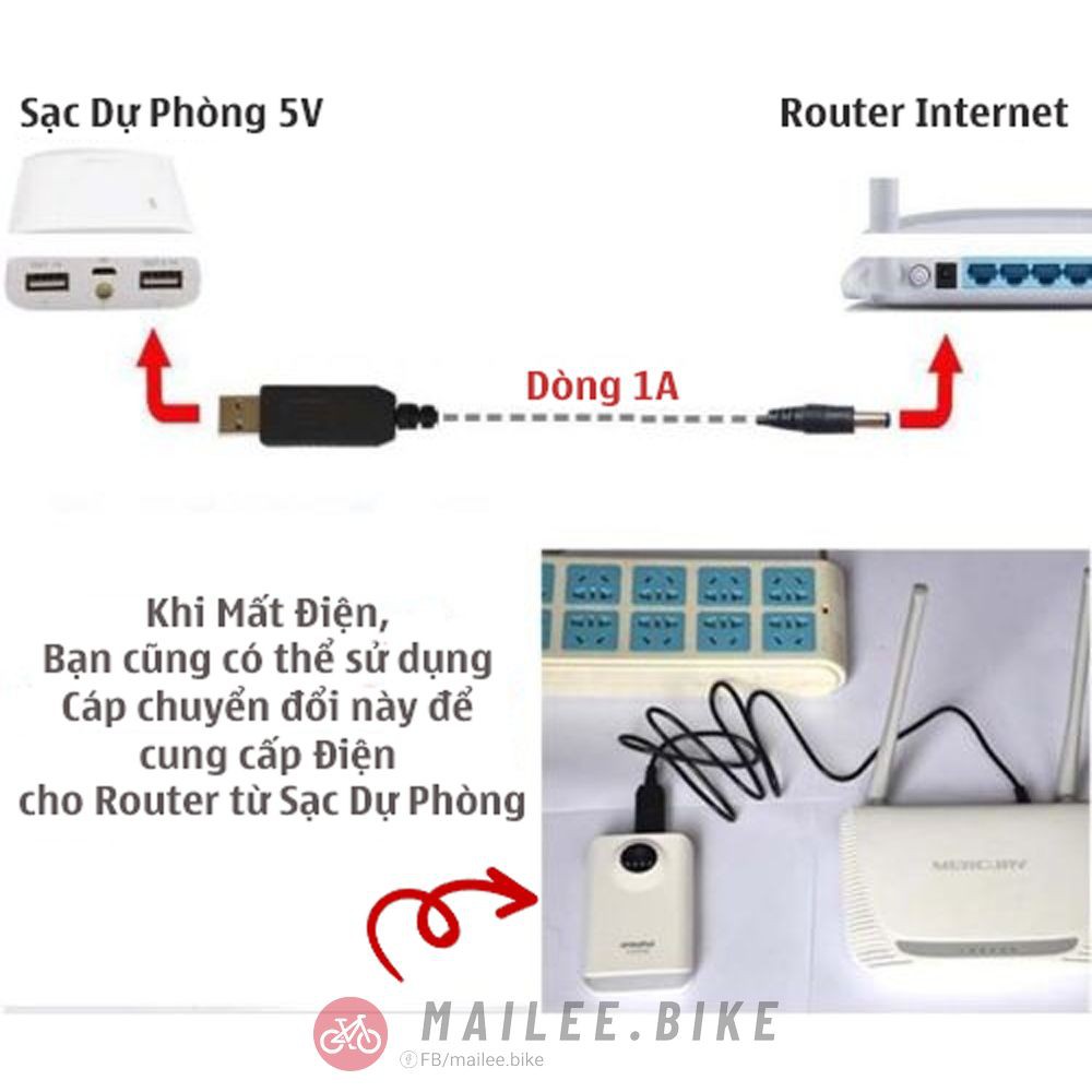 Cáp Chuyển Đổi USB 5V Sang DC 9V/12V Dùng Cho Router Wifi Tiện Lợi Khi Mất Điện Vẫn Có Mạng Và Wifi