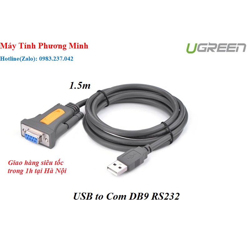 Cáp chuyển đổi USB to Com RS232 (DB9) dài 1,5m UGREEN 20201 - Hàng chính hãng bảo hành 18 thángCáp chuyển đổi USB sang Com RS232 (DB9) căí
