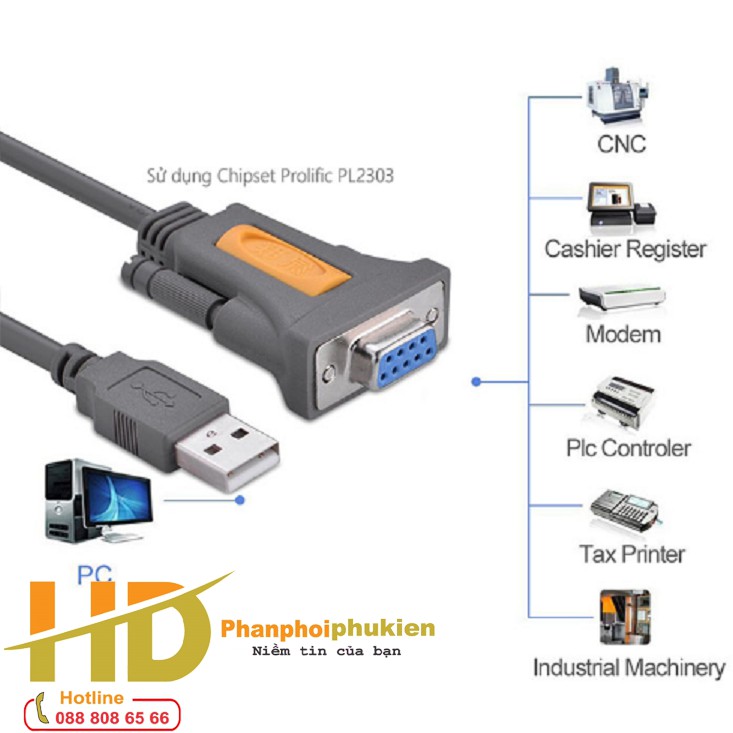 Cáp usb sang Com rs232 ứng dụng cho : Máy mã vạch, máy móc công nghiệp, thiết bị đo đạc, máy công cụ CNC, PDA, Điều khiển công nghiệp MCU / PLD / FPGA từ cổng USB, các thiết bị ngành y tế...