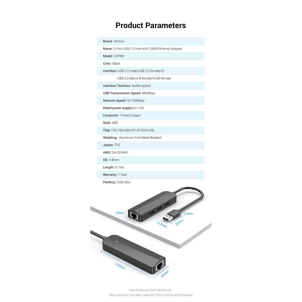 Máy tính & Laptop > Thiết Bị Lưu Trữ > USB & OTG || Cáp chuyển đổi Usb to lan + 3 cổng usb 2.0 Vention có nguồn hỗ trợCòn hàng