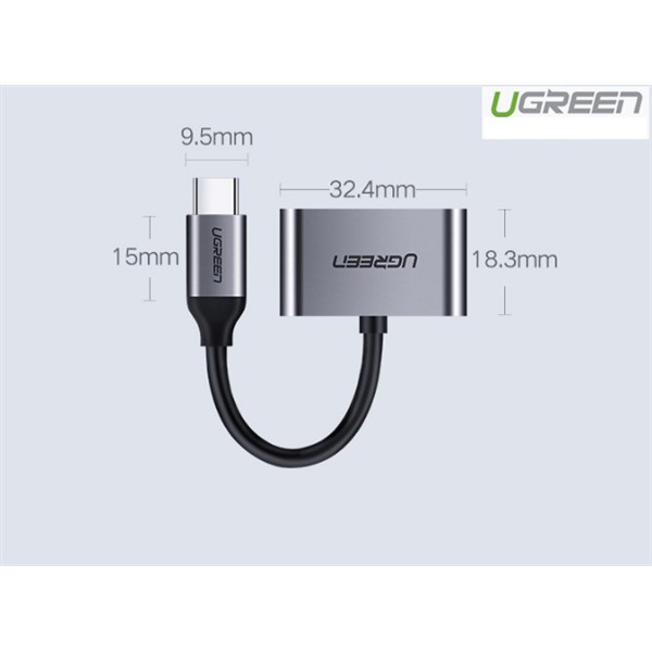 Cáp chuyển đổi USB Type C ra Audio 3,5mm Ugreen 50596 hỗ trợ sạc USB C