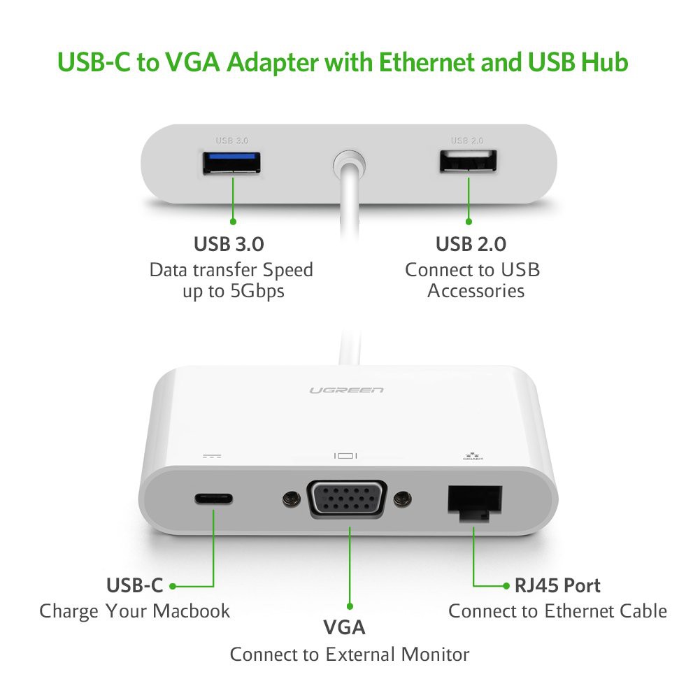 Máy tính & Laptop > Thiết Bị Lưu Trữ > USB & OTG || [Mã ELMALL150 giảm 8% đơn 500K] Cáp chuyển đổi USB Type C sang VGA + Hub USB 3.0 và USB2.0 UGREEN US182 30439Còn hàng