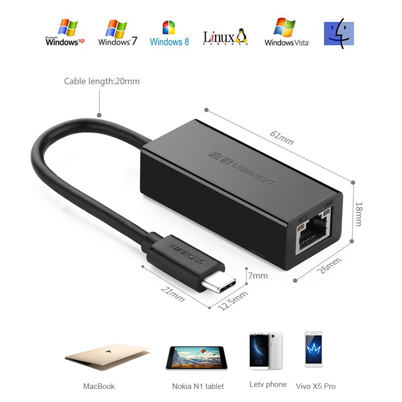Máy tính & Laptop > Thiết Bị Lưu Trữ > USB & OTG || [Mã ELMALL150 giảm 8% đơn 500K] Cáp chuyển đổi USB type C sang đầu mạng Ethernet RJ45 Gigabit UGREEN 50307Còn hàng