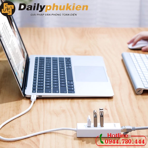 Giới thiệu Cáp chuyển đổi USB type C sang Ethernet RJ45 + Hub 3 cổng USB 2.0 dài 30cm UGREEN 20792 dailyphukien