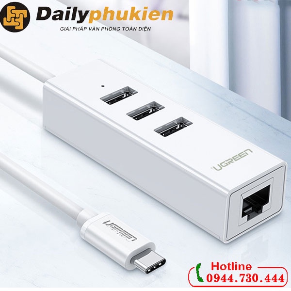 Máy tính & Laptop > Thiết Bị Lưu Trữ > USB & OTG || Cáp chuyển đổi USB type C sang Ethernet RJ45 + Hub 3 cổng USB 2.0 dài 30cm UGREEN 20792 dailyphukienCòn hàng