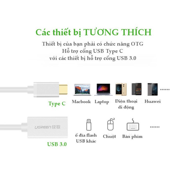 Cáp chuyển đổi USB Type-C sang USB 3.0 có hỗ trợ OTG: cho phép bạn kết nối ổ đĩa flash, bàn phím, chuột, hoặc các thiết bị hỗ trợ tiêu chuẩn USB-A với một thiết bị USB-C như Apple MacBook mới 12, Google Chromebook, Nokia ....có hỗ trợ chức năng OTG