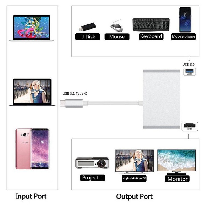 » Cáp chuyển từ USB Type-C đến cổng HDMI, USB 3.0, USB C
