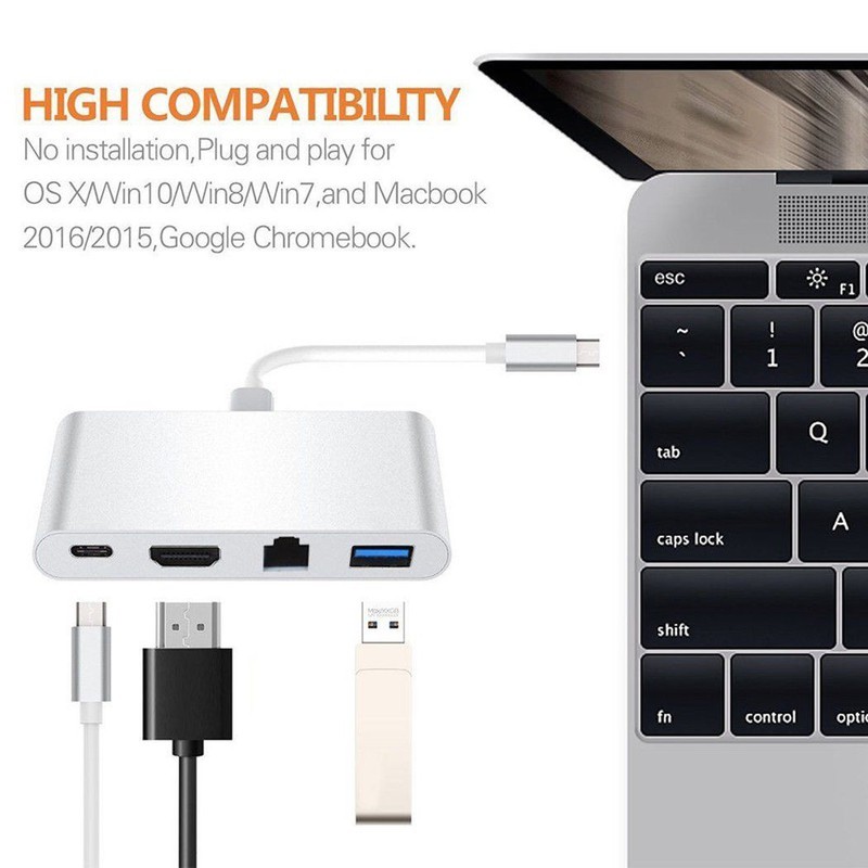- Cáp chuyển đổi USB-C to HDMI / Ethernet / Hub USB 2.0 được thiết kế để kết nối MacBook với cổng USB-C để một hiện HDTV, màn hình hoặc máy chiếu với HDMI với độ phân giải lên đến 4K. ( 4096x2160 )- Cáp chuyển usb type C sang lan hỗ trợ cổng Lan 10 / 100Mbps Ethernet mạng có thể dễ dàng để kết nối máy tính của bạn vào bất kỳ mạng Ethernet .