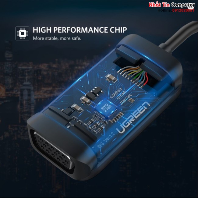 Cáp chuyển đổi USB Type-C sang VGA của Ugreen 50316 được thiết kế để kết nối các máy tính mới được phát hành như MacBook 2015, Google Chromebook Pixel hoặc ASUS Zen AiO PC với HDTV, màn hình hiển thị hoặc máy chiếu có giao diện VGA ở độ phân giải lên đến 1080P, xuất ra nội dung do người dùng tạo như thuyết trình và tài liệu công việc, nó cũng có thể hoạt động để tăng năng suất của bạn bằng cách mở rộng máy tính để bàn của bạn lên màn hình phụ, nhân đôi không gian làm việc có sẵn.