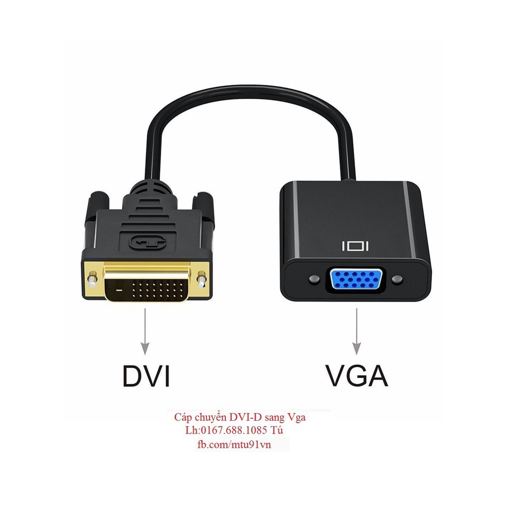 - DVI-D 24+1 sang vga Tích hợp chipset chuyển đổi bên trong, sử dụng kết nối Card đồ họa máy tính, Mainboard máy tính bàn, máy tính đồng bộ có ra DVI màn hình máy tính, máy chiếu.Sản phẩm có IC chuyển đổi bên trong cáp