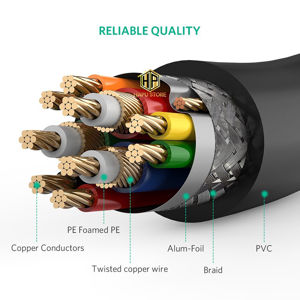 ◇ Ugreen 11618 Với thiết kế 2 đầu cắm mạ vàng giúp tối ưu hóa hiệu quả truyền tín hiệu, đảm bảo tốc độ truyền tải tốt nhất, không bị giật hình ảnh