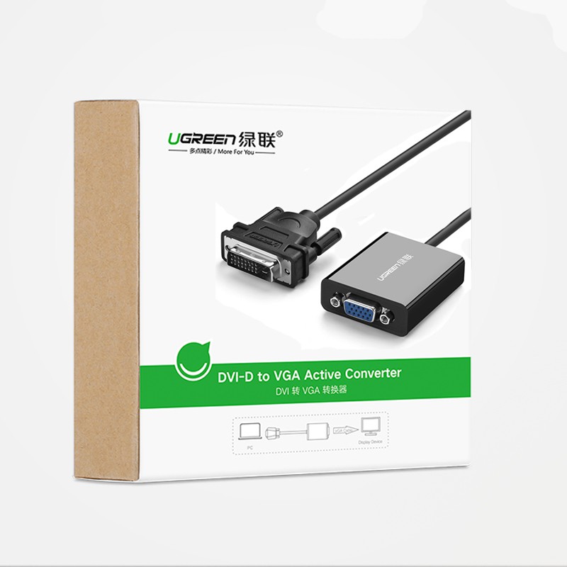 - Ugreen MM108 cáp chuyển tín hiệu DVI-D 24+1 sang tín hiệu VGA, cáp chuyển này sử dụng trong các trường hợp cần kết nối máy tính, laptop, đầu đĩa hỗ trợ cổng DVI sang thiết bị hiển thị như TV, máy chiếu, màn hình máy tính hỗ trợ cổng VGA. Độ phân giải hình ảnh lên đến 1920*1080/60Hz..