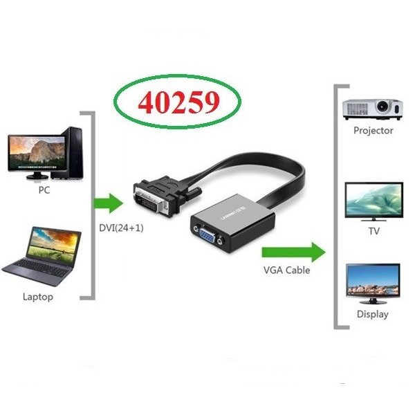 Máy tính & Laptop > Thiết Bị Lưu Trữ > USB & OTG || Cáp chuyển DVI sang Vga Cao cấp Ugreen 40259 40387 MM108 Chính Hãng (DVI D 24+1 to VGA)Còn hàng