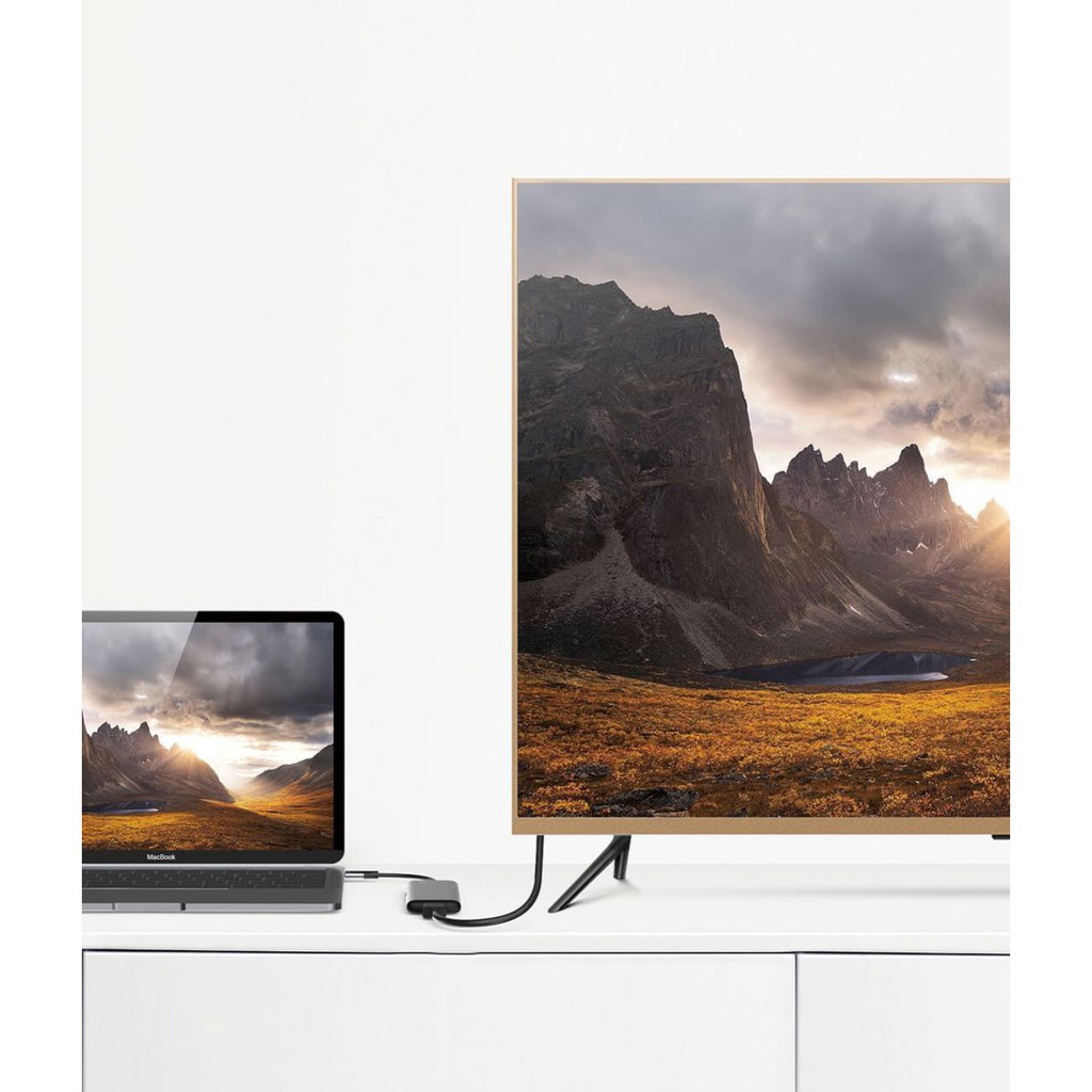 Hagibis USB Type-C 5 in 1 cung cấp cho người dùng cổng kết nối thông dụng: HDMI x1 và 4 x USB 3.0- Cổng HDMI tích hợp trên bộ Hub có thể xuất ra các màn hình lớn với độ phân giải 4K 30Hz. Hỗ trợ cực kỳ tốt cho bạn nếu như bạn phải thường xuyên tham gia thuyết trình hay trình chiếu.