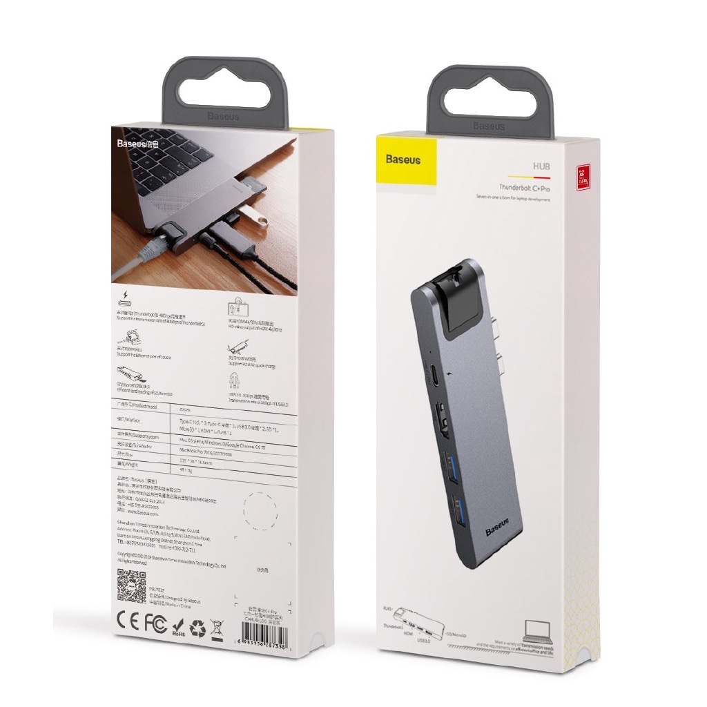 - Bộ Hub chuyển đổi Baseus Thunderbolt Pro 7 in 1 Smart hub có thiết kế đẹp, nhỏ gọn. Bề mặt bằng kim loại màu xám bạc được sơn tỉnh điện cao cấp chống bám vân tay. Thiết kế tinh tế, sang trọng và đẳng cấp