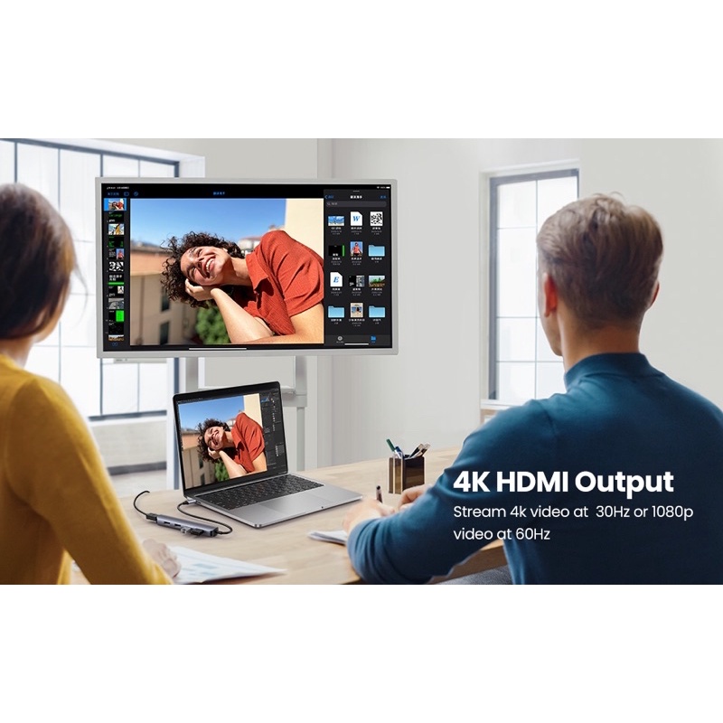 Bộ chuyển đổi đa cổng USB C Hub Ugreen 20197 đi kèm với một cổng HDMI để kết nối với màn hình HDMI, độ phân giải lên đến 4K @ 30Hz.