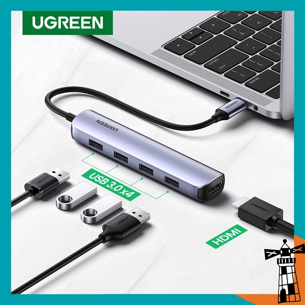 Máy tính & Laptop > Phụ Kiện Máy Tính > Bộ chia cổng USB & Đọc thẻ nhớ || Cáp Chuyển Hub Ugreen 20197 5 in 1 Type C Ra 4 USB3.0 + HDMI Vỏ Nhôm Ultra SlimCòn hàng