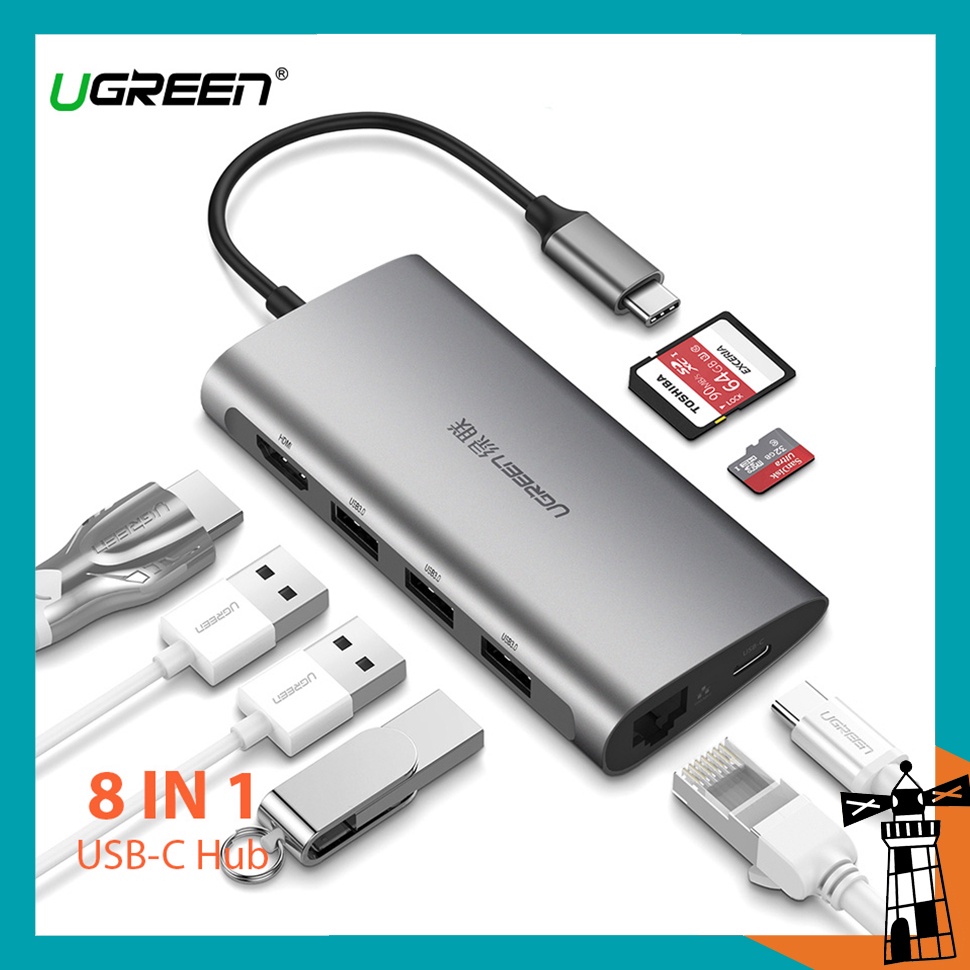Giới thiệu Cáp Chuyển Hub Ugreen 8 in 1 USB Type C Sang 3xUSB 3.0 + HDMI + RJ45 + SD,TF Ugreen 50538