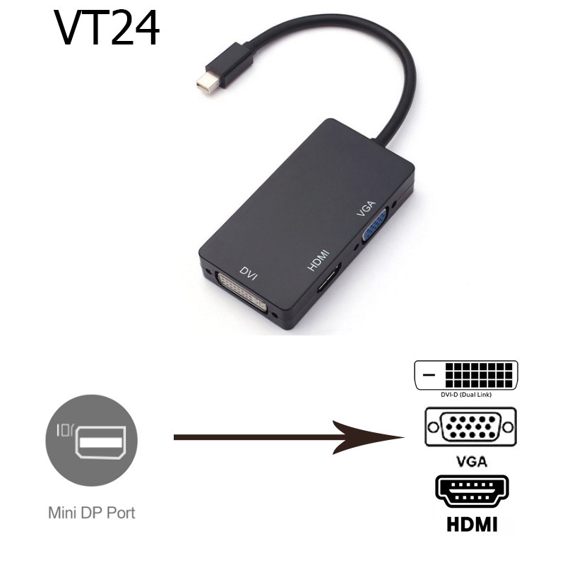 Cáp chuyển Mini Displayport ra HDMi/ VGA/ DVi - MDVT24 cho laptop Dell, Acer, Lenovo