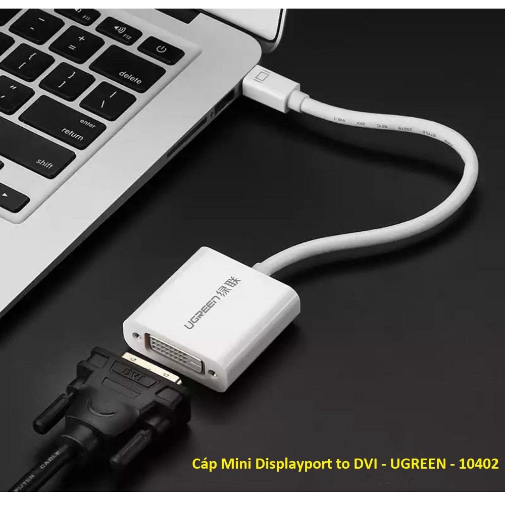 Giới Thiệu Sản PhẩmCáp chuyển đổi Mini Displayport to DVI 24+5 Ugreen 10402 là bộ chuyển đổi nhỏ gọn thuận tiển để kết nối một máy tính có cổng Mini DisplayPort / Mini DP / MDP / Thunderbolt với một màn hình hoặc máy chiếu thông qua cổng DVI 24+5.