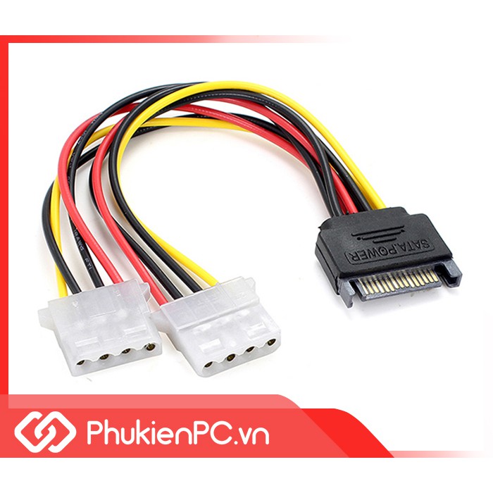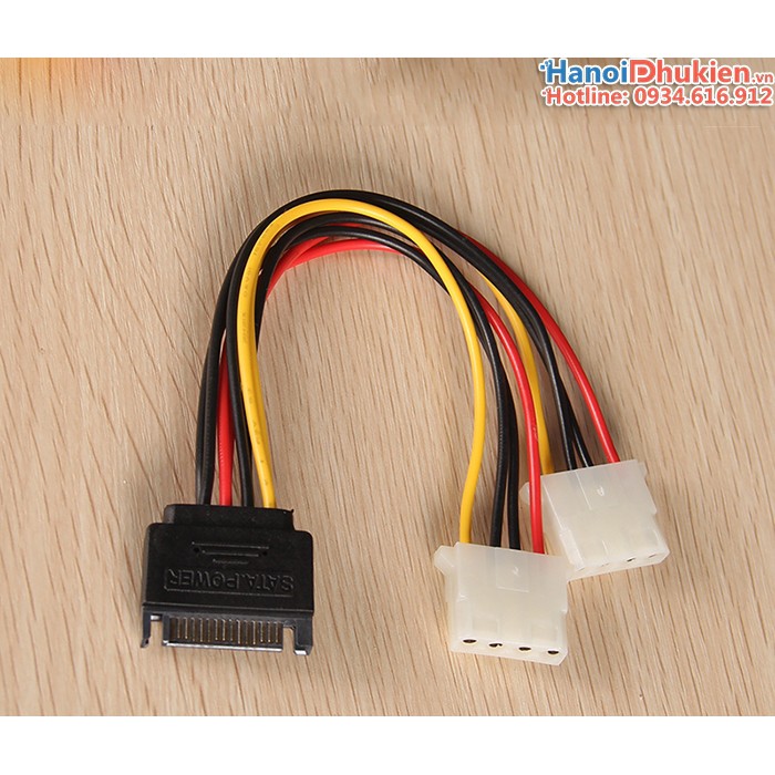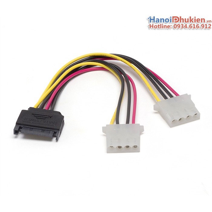 Cáp chuyển SATA 15pin sang 2 Molex 4pin (IDE)Cáp chuyển đổi SATA 15pin (giắc nguồn ổ cứng SATA) sang 2 x Molex IDE 4pin. Giúp bạn tạo ra 2 cổng Molex 4pin cấp nguồn cho DVD ATA, CD ATA, HDD ATA (IDE)