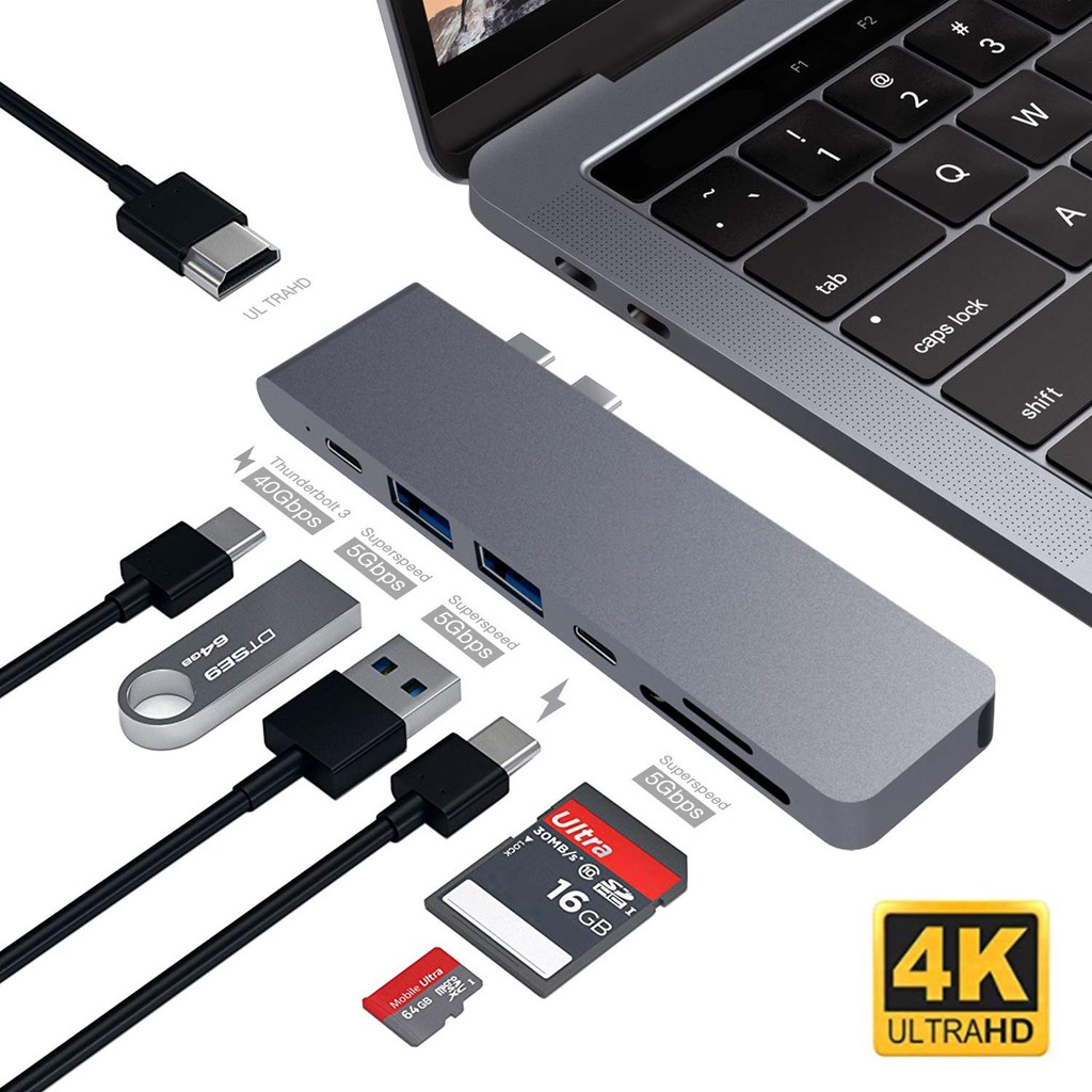Giới thiệu Cáp chuyển Thunderbolt 3 cho Macbook 2020 ra 7 cổng - HDMI/ TF/ SD/ USB 3.0/ Type-c