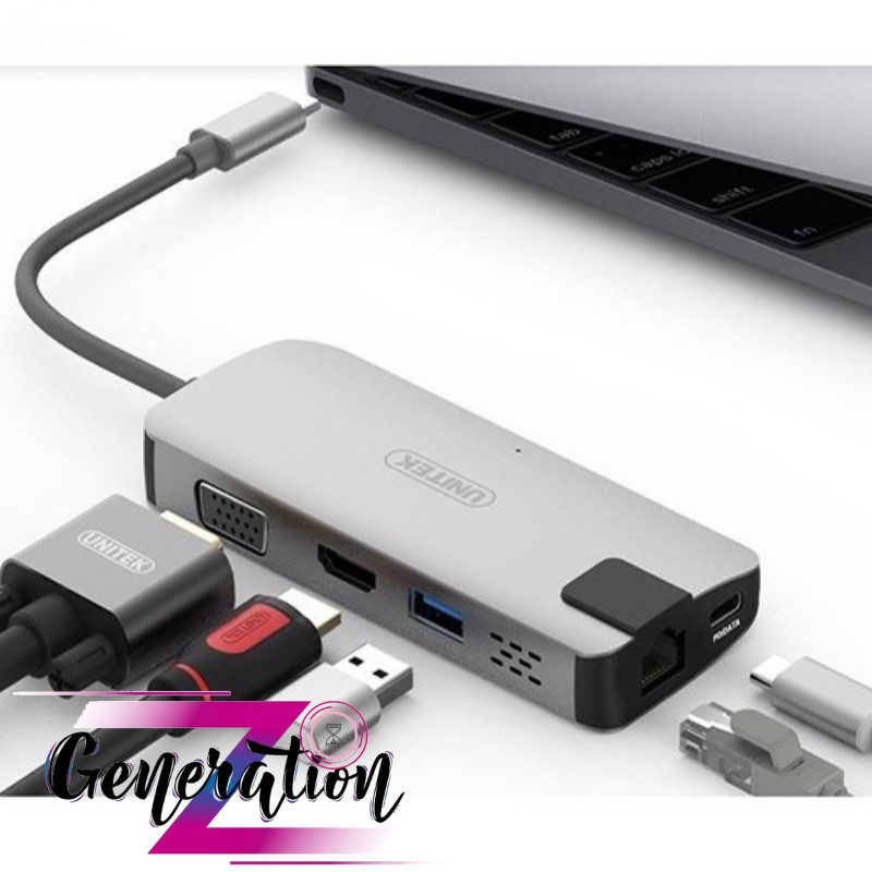 Máy tính & Laptop > Phụ Kiện Máy Tính > Bộ chia cổng USB & Đọc thẻ nhớ || CÁP CHUYỂN TYPE-C RA HDMI+VGA+LAN UNITEK Y-DK09016 - USB 3.1 Type-C Multi-Port Hub with Power DeliveryCòn hàng