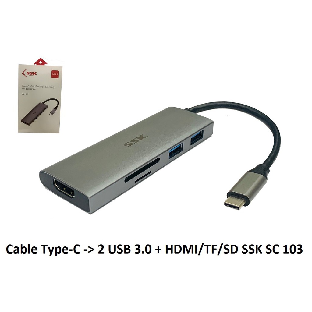Cáp chuyển Type C sang 2 USB 3.0 + HDMI + đọc thẻ nhớ micro SD/TF thẻ nhớ SD SSK SC 103 ( SC103 )