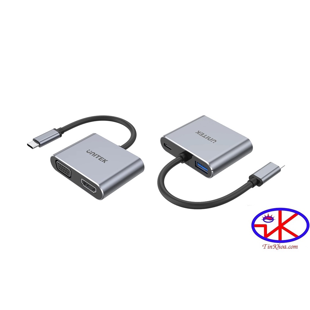 Máy tính & Laptop > Linh Kiện Máy Tính > Khác || Cáp chuyển Type C sang USB 3.0 + HDMI + VGA + PD 100W UNITEK D1049A kèm cáp nguồn.TYPE-C -> USB 3.0 + HDMI + VGA + PDCòn hàng