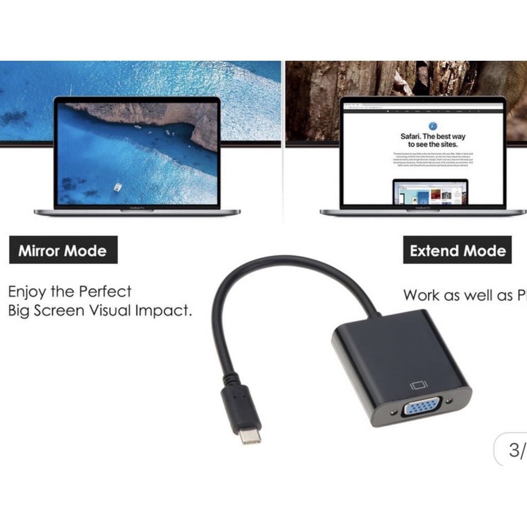Bộ kết nối USB loại c đực với bộ chuyển đổi cái VGA này được thiết kế cho máy tính xách tay MacBook điện toại có chức năng xuất hình bằng dây mới để phản chiếu màn hình của bạn với máy chiếu hoặc màn hình hỗ trợ VGA. Kết nối với máy chiếu trong phòng học hoặc phòng hội thảo để hiển thị bản trình bày hoặc thêm gương màn hình hoặc mở rộng máy tính để bàn của bạn để có không gian làm việc toàn diện.