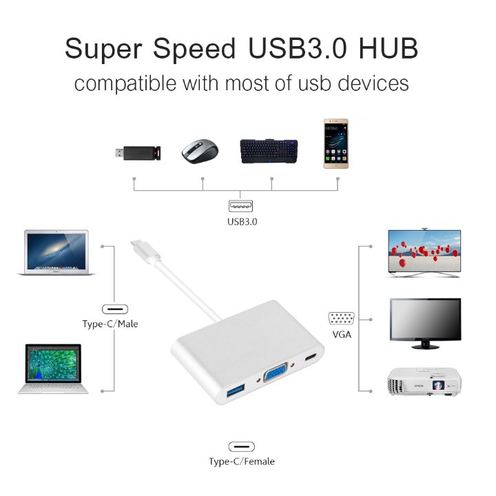 Đầu vào Usb Type CĐầu ra VGA/USB/TYPE C