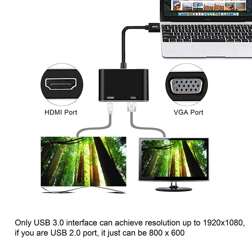 Bộ chuyển đổi USB sang HDMI này biến một cổng USB 3.0 có sẵn thành đầu ra HDMI / VGA với độ phân giải cao 1920 * 1080.