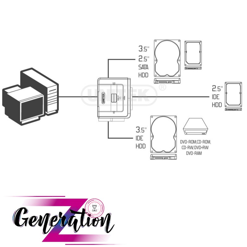 Giới thiệu CÁP CHUYỂN USB 3.0 RA IDE 2.5/3.5 + SATA 2.5/3.5 UNITEK (Y-3322A)