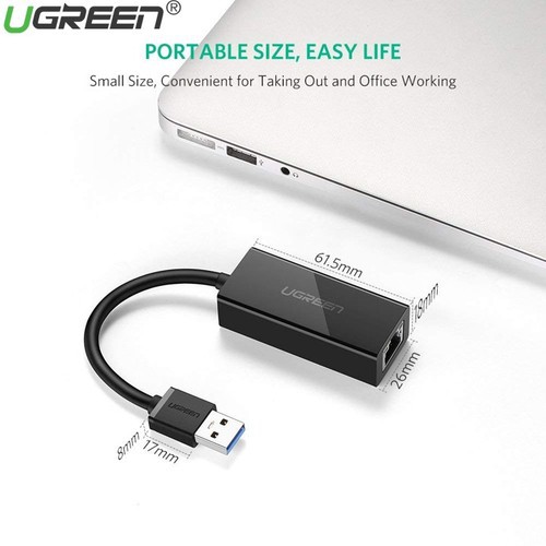THÔNG TIN SẢN PHẨM:- Cáp USB 3.0 to Lan màu đen chất lượng tốt Ugreen 20256