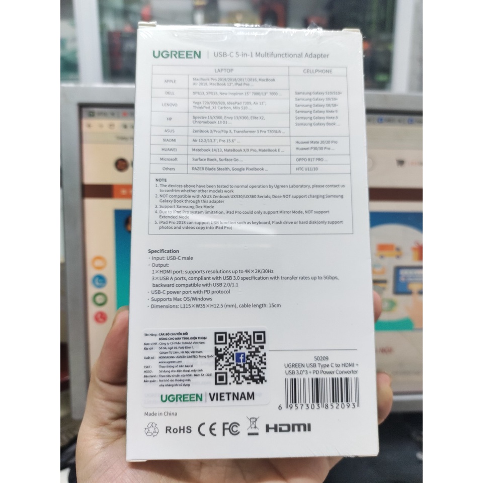 Máy tính & Laptop > Thiết Bị Lưu Trữ > USB & OTG || Cáp chuyển USB-c sang HDMI kèm Hub USB 3.0 UGREEN 50209Còn hàng