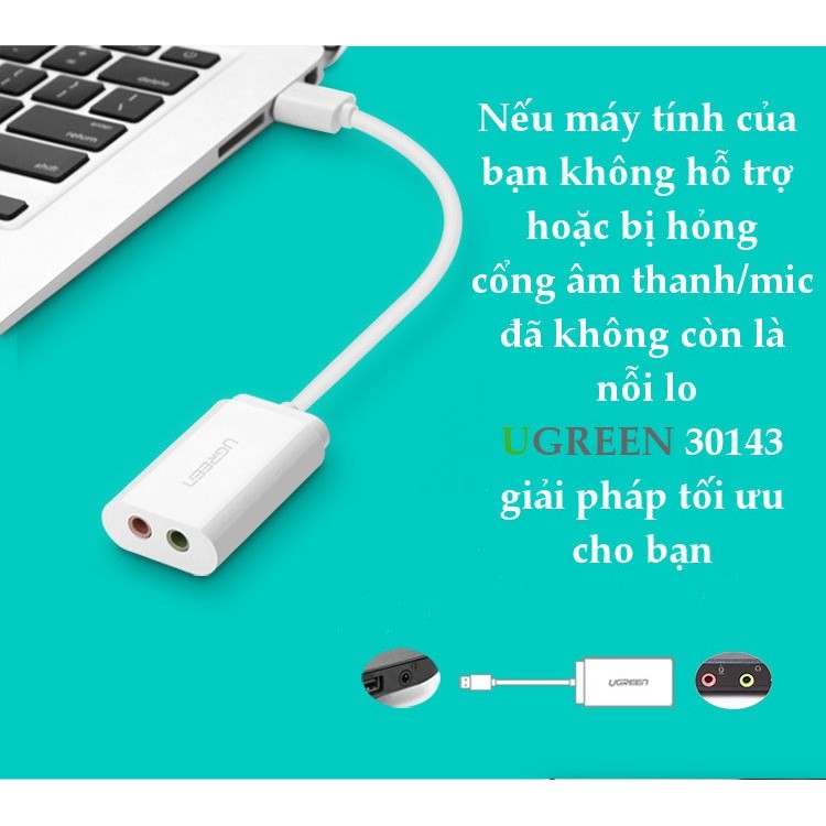 Cáp chuyển USB ra Sound UGREEN 30143 (USB Sang Headphone và Microphone jack 3.5mm) cao cấp - Hàng