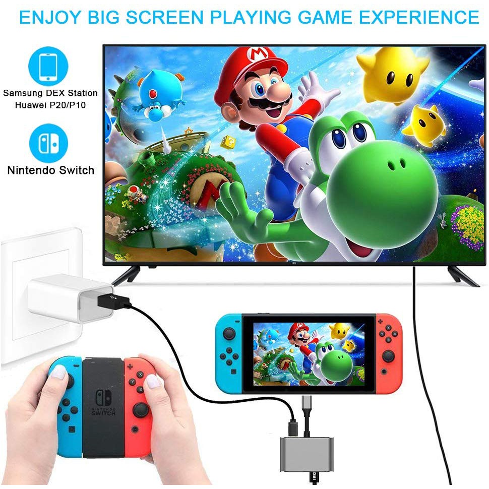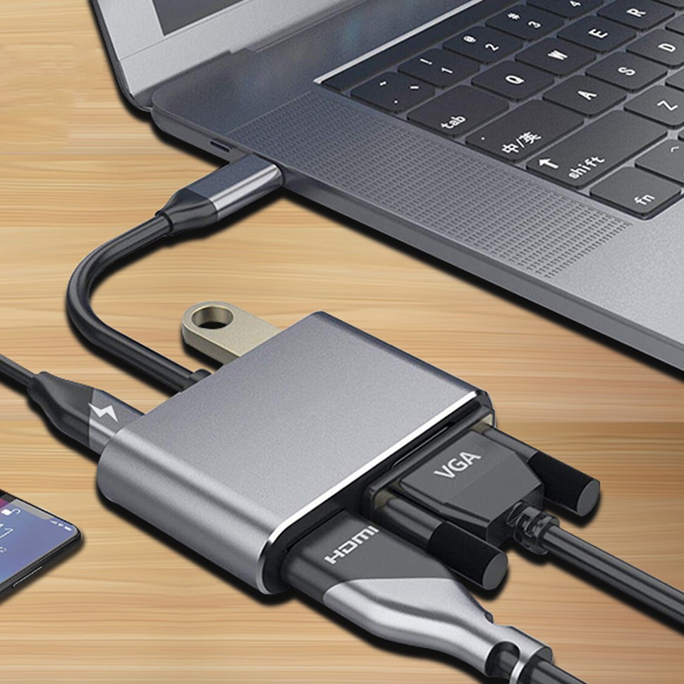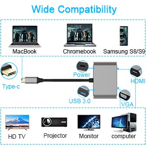 [Bộ chuyển đổi Usb Type-C 4in1] Cắm và chạy, Không cần trình điều khiển hoặc bộ điều hợp nguồn bên ngoài. Mở rộng cổng usb c của bạn sang HDMI, đầu ra VGA, USB 3.0 và Cổng sạc USB-C. Cho phép bạn Phản chiếu hoặc Mở rộng điện thoại của bạn sang Màn hình lớn và truyền hình ảnh 4K UHD hoặc 1080p sang HDTV, Màn hình, Máy chiếu. Perfec cho chơi game, làm việc và giải trí.