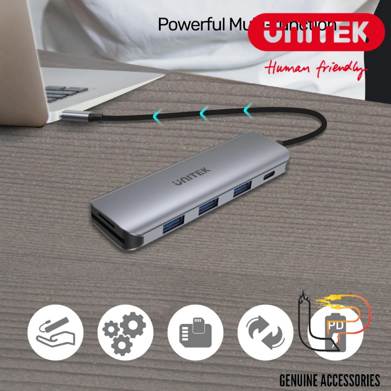 Máy tính & Laptop > Thiết Bị Lưu Trữ > USB & OTG || [Mã 273ELHA100K0 hoàn 7% đơn 500K] CÁP CHUYỂN USB TYPE-C RA 4 USB 3.0 + TF/SD + PD 100W UNITEK H1107CCòn hàng