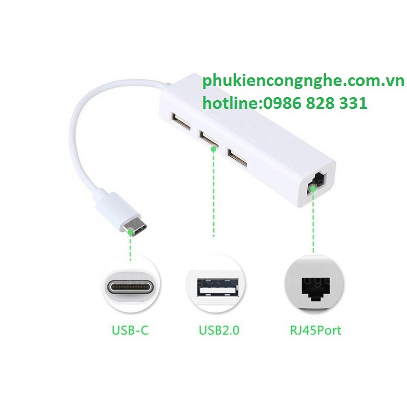 Cáp chuyển USB Type-C ra LAN hỗ trợ 3 cổng USBHub USB Type-C 3 cổng với tính năng (kết nối cổng LAN truy cập internet):