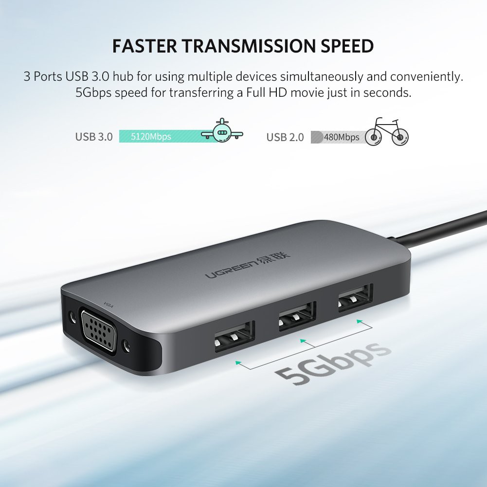 Máy tính & Laptop > Thiết Bị Lưu Trữ > USB & OTG || Cáp Chuyển USB Type-C ra VGA, USB 3.0, Hub Type-c Cao Cấp UGREEN CM136 - Hàng Chính HãngCòn hàng