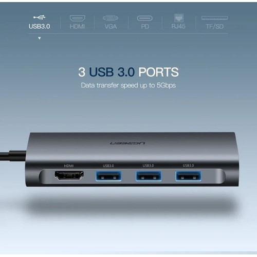 Máy tính & Laptop > Thiết Bị Lưu Trữ > USB & OTG || Cáp Chuyển USB Type C Sang Các Cổng HDMI + VGA + 3 Cổng USB 3.0 + Lan Gigabit RJ45 + SD,TF Ugreen 40873 - Chính HãngCòn hàng