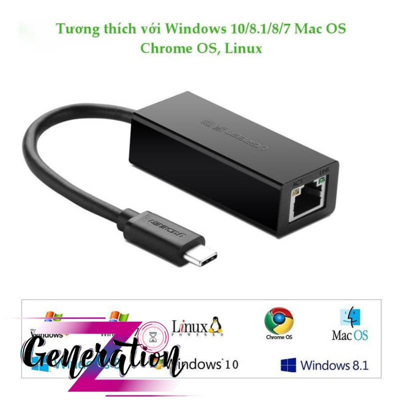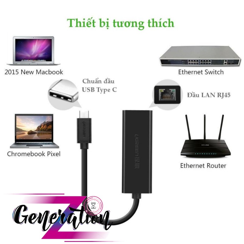 Cáp chuyển USB TYPE C Sang LAN Ugreen 30287Bộ chuyển USB TYPE C to LAN Ugreen 30287 là phụ kiện chính hãng cao cấp giúp bạn kết nối Macbook, Lenovo Yoga 900, Notebook, Google Chromebook và nhiều dòng máy Laptop, PC đời mới khác có tích hợp cong USB-C ... với mạng internet qua cổng lan RJ45 tốc độ ổn định lên đến 100Mbps, phục vụ nhu cầu internet tốc độ cao như lướt web, chơi game, xem phim...