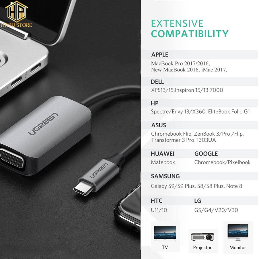 Máy tính & Laptop > Thiết Bị Lưu Trữ > USB & OTG || [Mã 253ELSALE hoàn 7% đơn 300K] Cáp chuyển USB Type C sang VGA Ugreen 50316 chính hãng - HapustoreCòn hàng