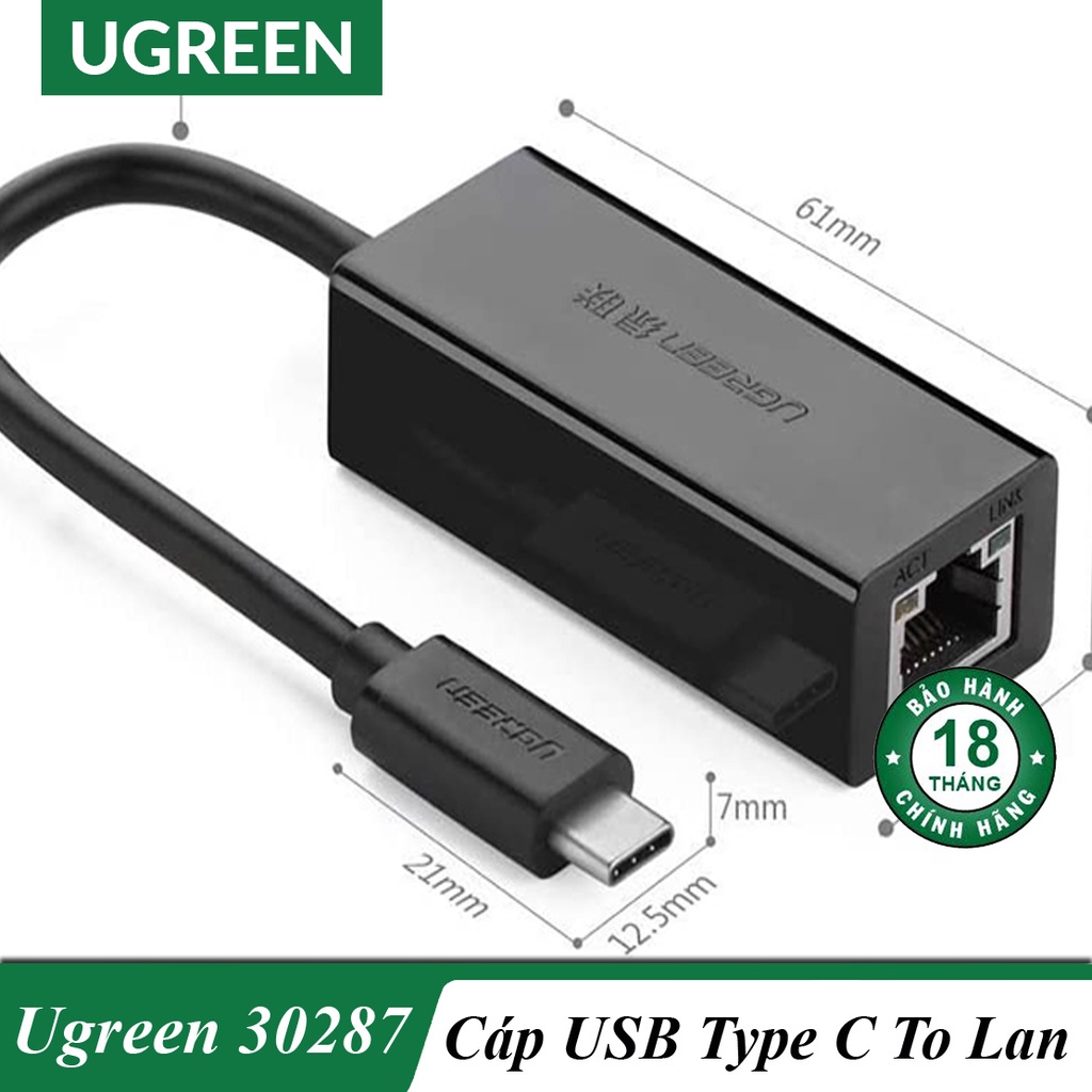 Cáp chuyển USB TYPE C Sang LAN Ugreen 30287Bộ chuyển USB TYPE C to LAN Ugreen 30287 là phụ kiện chính hãng cao cấp giúp bạn kết nối Macbook, Lenovo Yoga 900, Notebook, Google Chromebook và nhiều dòng máy Laptop, PC đời mới khác có tích hợp cong USB-C ... với mạng internet qua cổng lan RJ45 tốc độ ổn định lên đến 100Mbps, phục vụ nhu cầu internet tốc độ cao như lướt web, chơi game, xem phim...