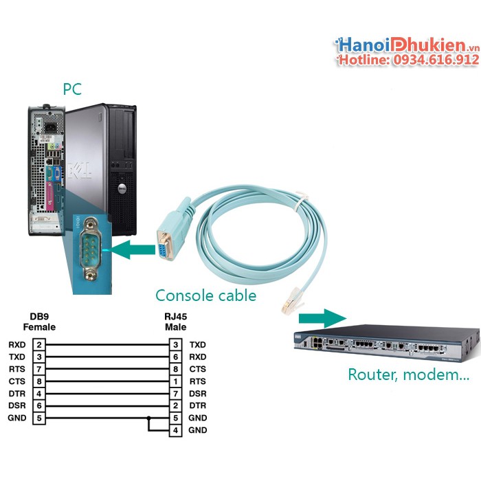 - Cáp chuyển đổi DB9 (RS232) sang RJ45 (có tên gọi khác: cáp cisco, cáp console, dây console)- Dùng lập trình, cài đặt Router, Switch, thiết bị Cisco, máy chủ, máy công nghiệp khác...