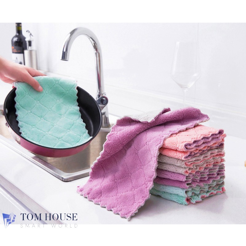 Combo 5 Khăn Lau Bếp Chén Bát 2 Màu Đa Năng Siêu Thấm Hút Sợi Vải Làm Sạch Mọi Bề MặtThông tin sản phẩm: